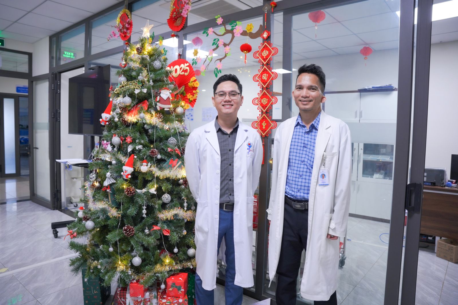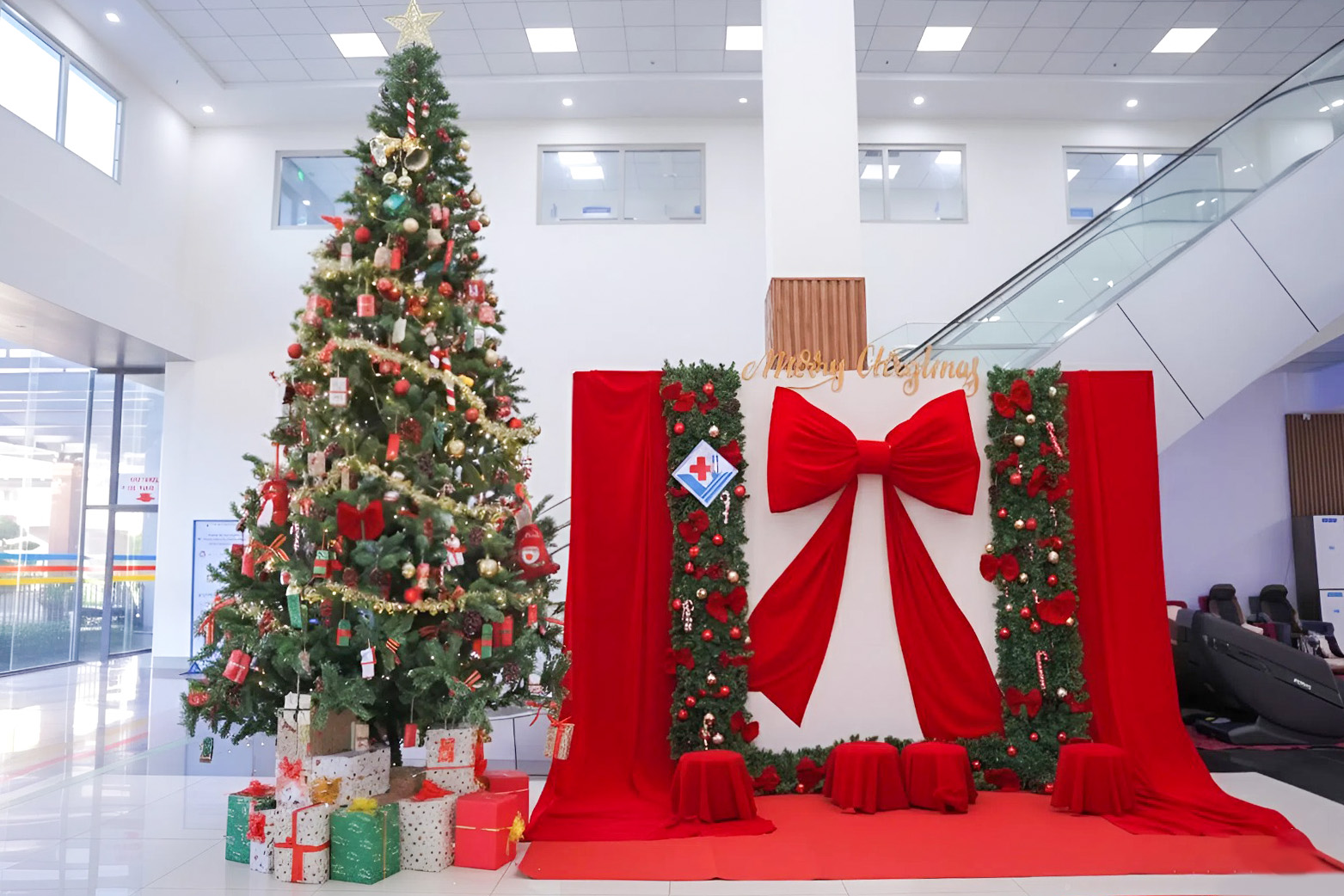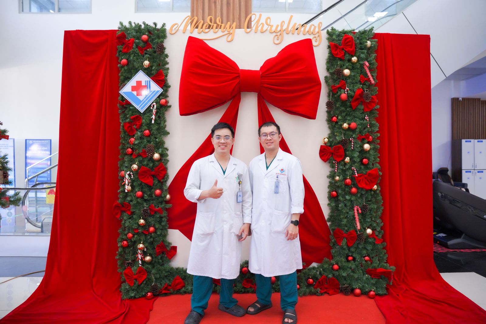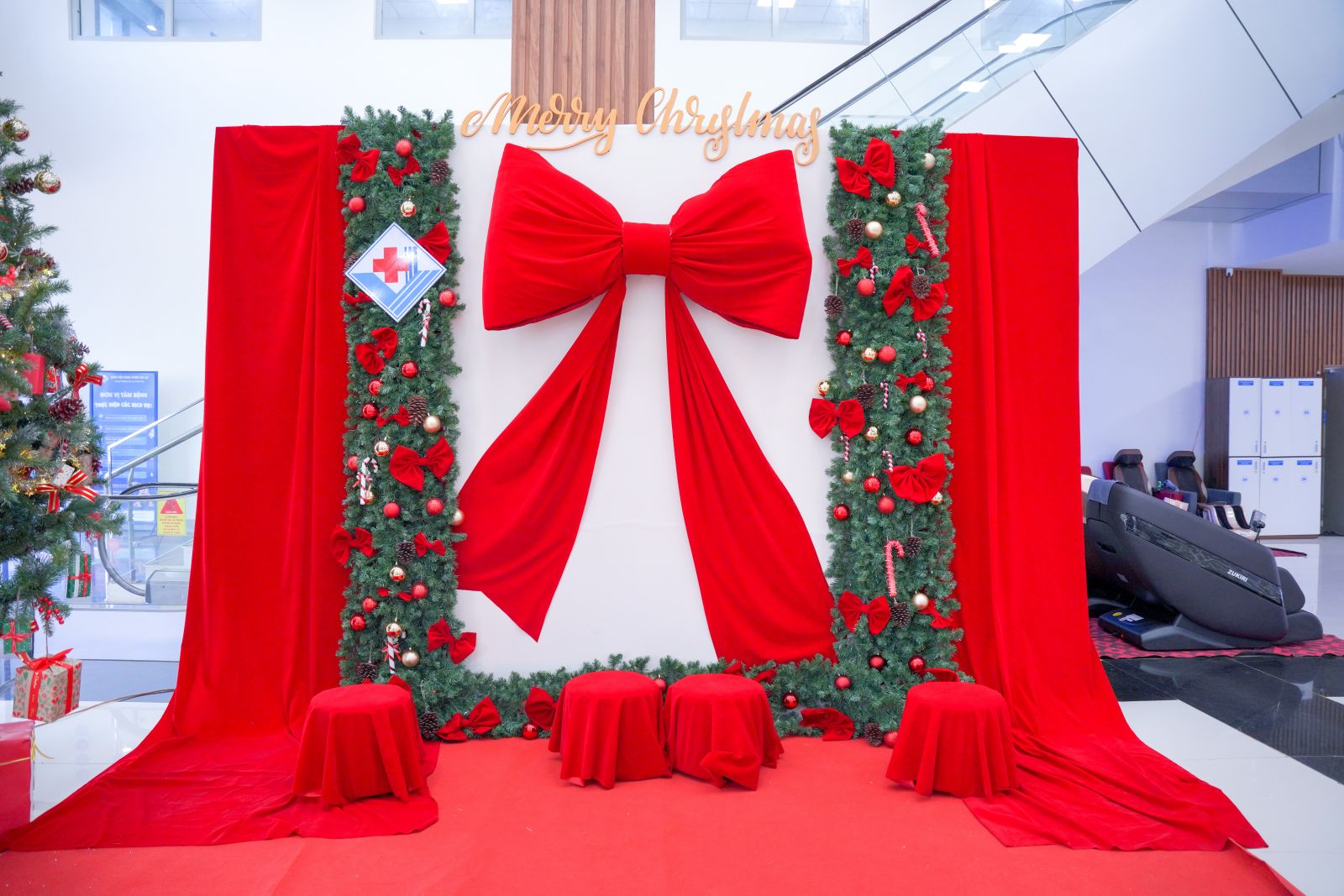 Điểm nhấn năm nay chính là cây thông kết hợp background check-in đặt tại khu vực đón tiếp – nơi có lượng khách đến khám và điều trị đông nhất. Không chỉ làm đẹp không gian, khu vực check-in còn mang đến cảm giác dễ chịu, tạo thêm niềm vui nhỏ cho người bệnh và người nhà trong những ngày cuối năm.