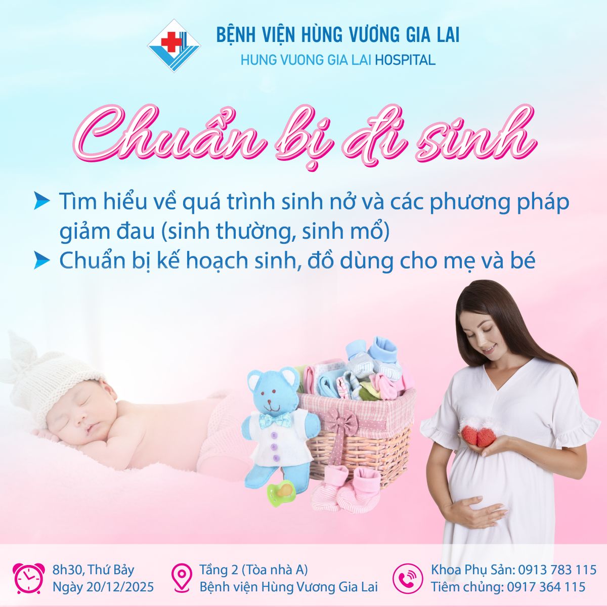 “Khi đi sinh cần chuẩn bị những gì?” – Đây là câu hỏi mà Bệnh viện Hùng Vương Gia Lai nhận được nhiều nhất trong thời gian gần đây. Vì vậy, lớp học tiền sản tháng 12, khoa Phụ Sản sẽ mang đến chủ đề “Chuẩn bị đi sinh” nhằm giúp mẹ bầu nắm vững những kiến thức quan trọng, từ đó hành trình đón bé yêu trở nên nhẹ nhàng – an tâm – trọn vẹn hơn.