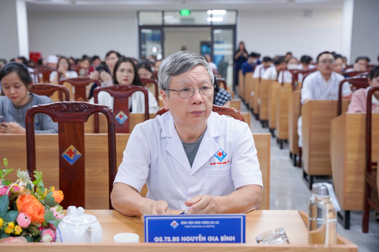 Phát biểu khai mạc hội thảo, đại diện Ban lãnh đạo Bệnh viện Hùng Vương Gia Lai, GS.TS.BS Nguyễn Gia Bình đã nhấn mạnh tầm quan trọng của việc cập nhật kiến thức chuyên môn và các tiến bộ y học mới trong điều trị nội khoa thoái hóa khớp gối – một bệnh lý cơ xương khớp phổ biến, có xu hướng gia tăng và ảnh hưởng lớn đến chất lượng cuộc sống của người bệnh. Giáo sư hy vọng, thông qua hội thảo lần này, đội ngũ y bác sĩ có thêm cơ hội tiếp cận các phác đồ điều trị hiện đại, chia sẻ kinh nghiệm thực tiễn, từ đó nâng cao hiệu quả điều trị, hướng tới mục tiêu chăm sóc người bệnh toàn diện, an toàn và bền vững.