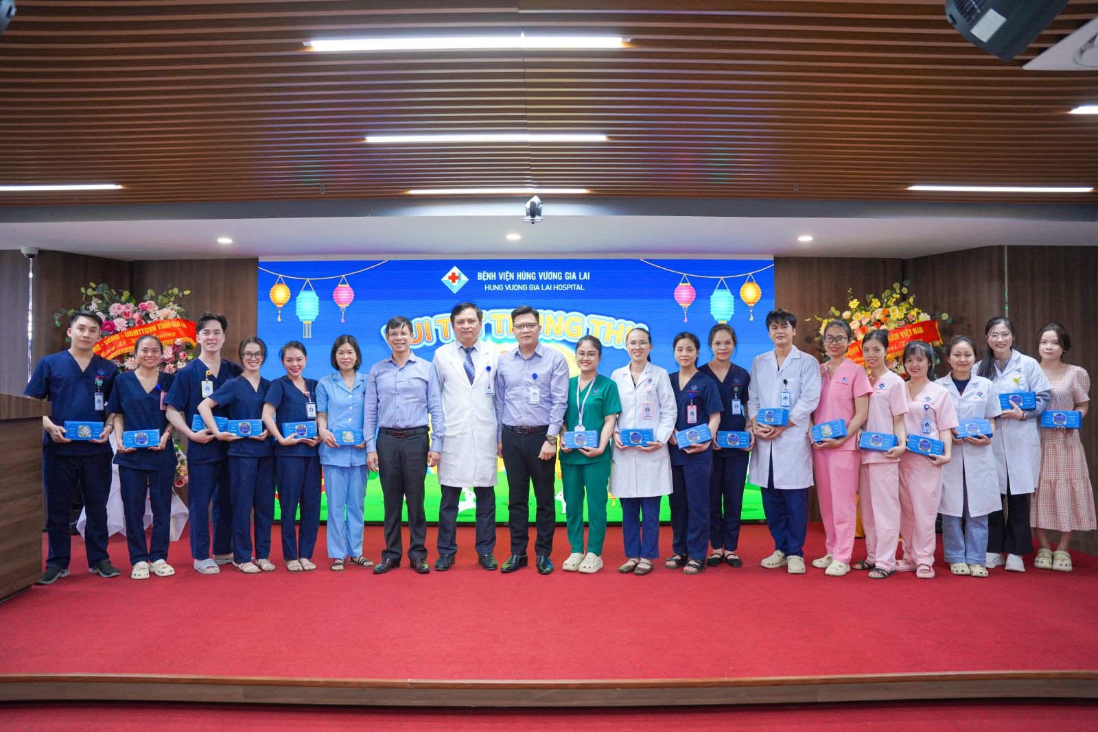 Hòa chung không khí rộn ràng của Tết Trung thu, chiều ngày 30/9/2025, Bệnh viện Hùng Vương Gia Lai đã tổ chức trao tặng những phần quà ý nghĩa đến toàn thể đội ngũ bác sĩ, điều dưỡng và nhân viên. Đại diện Ban lãnh đạo, Ông Nguyễn Thi – Phó Tổng Giám đốc Thường trực đã trực tiếp gửi trao những món quà như một lời tri ân sâu sắc.