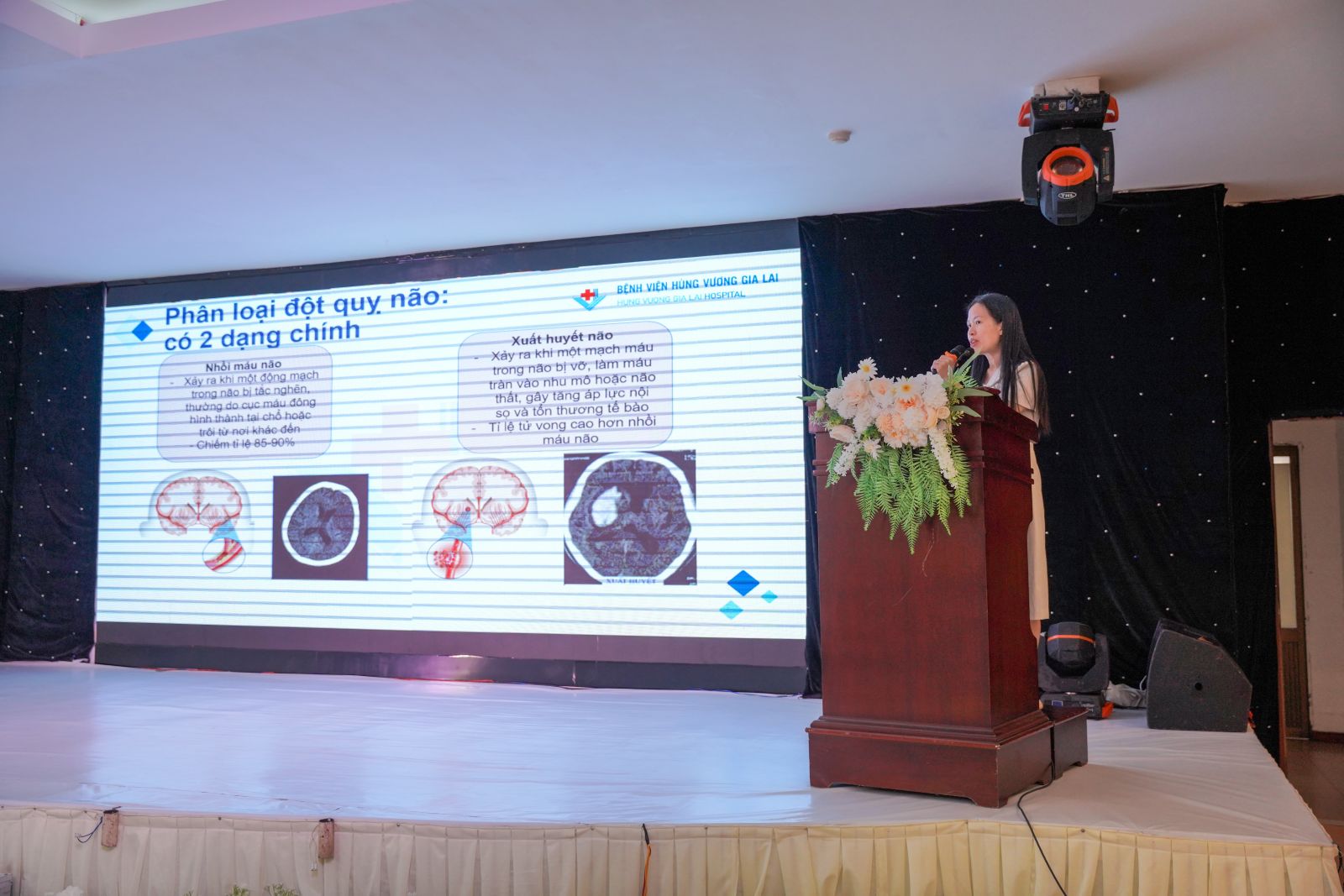 Vừa qua, ThS.BSNT Thái Thị Thùy Linh – Phó Trưởng khoa Nội Tổng hợp – Tim mạch, Bệnh viện Hùng Vương Gia Lai đã trực tiếp chia sẻ, giảng dạy trong buổi tập huấn với chủ đề “Đột quỵ và cách sơ cứu trong khung giờ vàng” dành cho các khách hàng và doanh nghiệp trên địa bàn tỉnh Gia Lai.