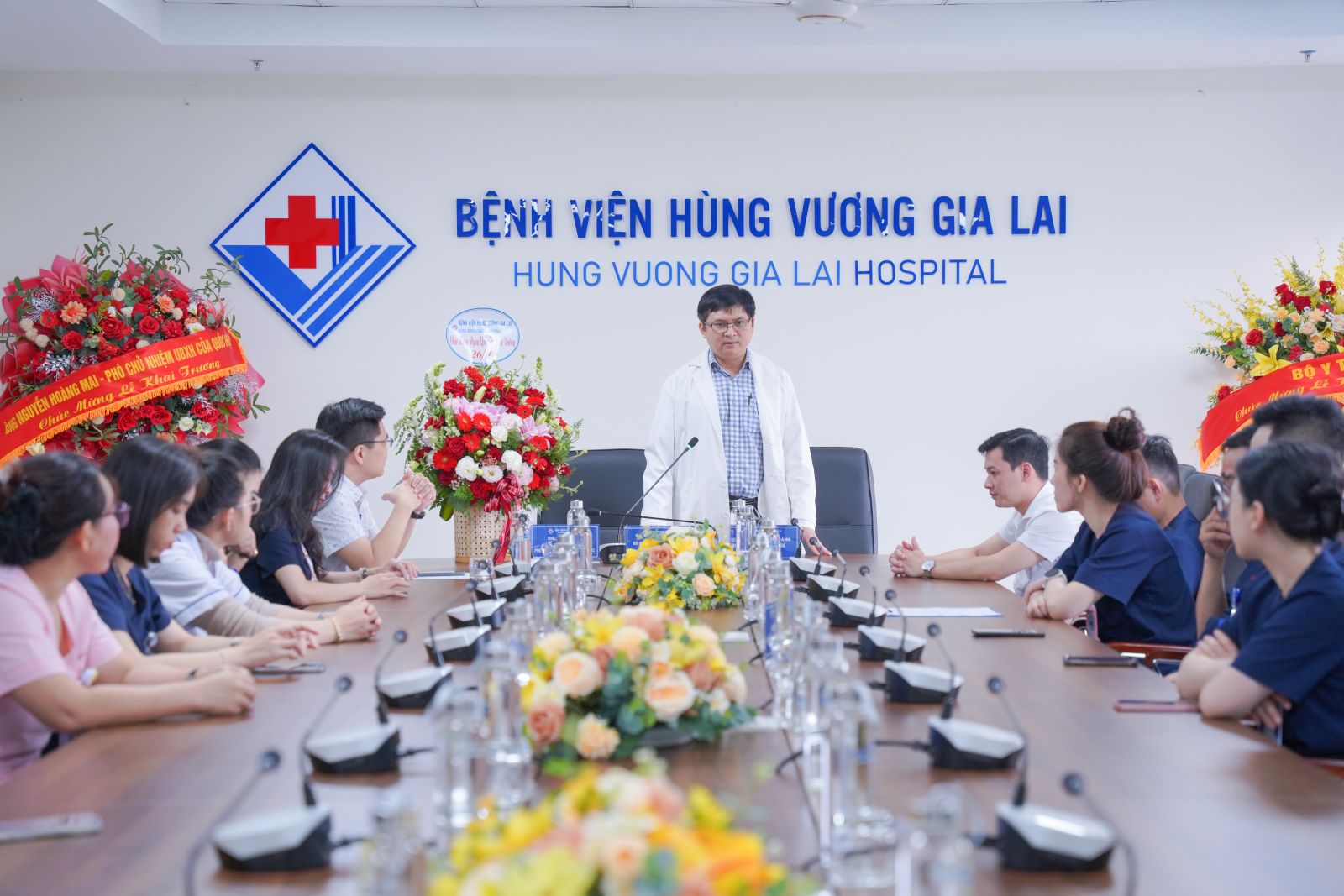 Phát biểu tại buổi gặp mặt, BS.CKII Bùi Viết Hoàng đã gửi lời chúc mừng tốt đẹp nhất đến toàn thể đội ngũ điều dưỡng, kỹ thuật viên và nữ hộ sinh của bệnh viện. Ông nhấn mạnh:“Điều dưỡng là lực lượng nòng cốt, là cầu nối giữa người bệnh và bác sĩ – những người góp phần tạo nên hình ảnh thân thiện, gần gũi của Bệnh viện Hùng Vương Gia Lai trong lòng nhân dân.”