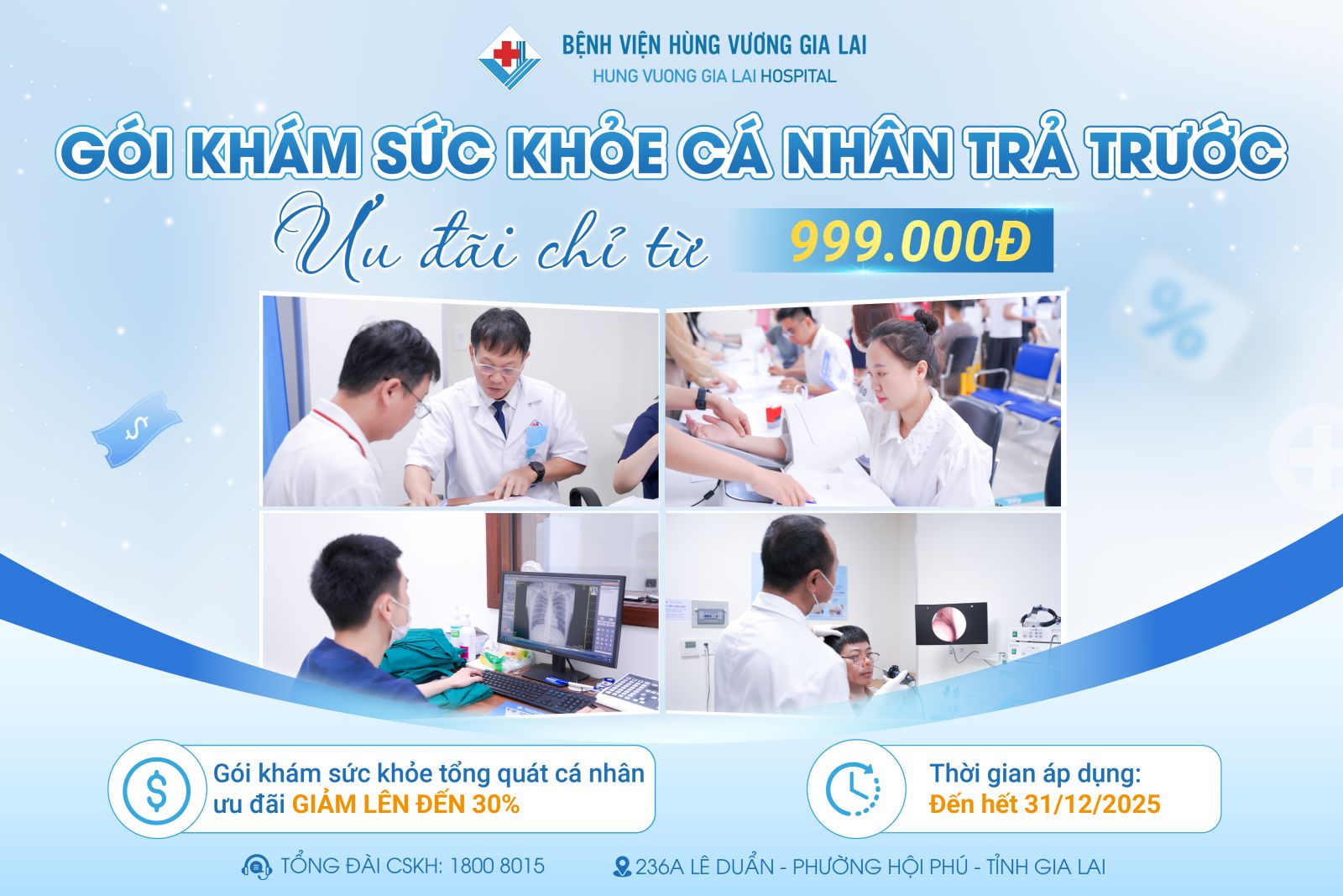 Bệnh viện Hùng Vương Gia Lai triển khai chương trình “Gói khám sức khỏe trả trước - Món quà cho sức khỏe” dành cho khách hàng cá nhân mua gói khám cho bản thân, gia đình hoặc tặng bạn bè, đối tác.
