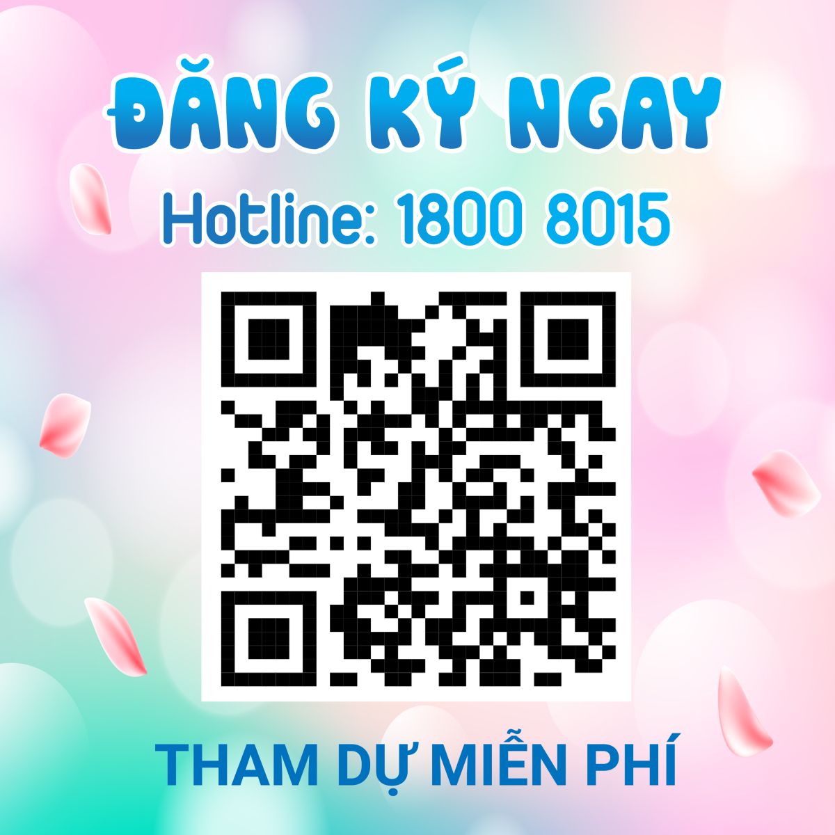 Ba mẹ vui lòng liên hệ số Hotline: 1800 8015 (miễn cước) hoặc quét mã QR code trong hình phía dưới để đăng ký nhé!