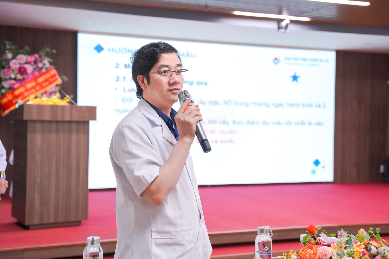 • ThS. Nguyễn Hoàng Tùng trình bày chuyên đề “Hướng dẫn lấy mẫu xét nghiệm” – giúp nhân viên y tế nắm vững quy trình lấy mẫu đúng kỹ thuật, đảm bảo chất lượng mẫu và độ chính xác của kết quả xét nghiệm.