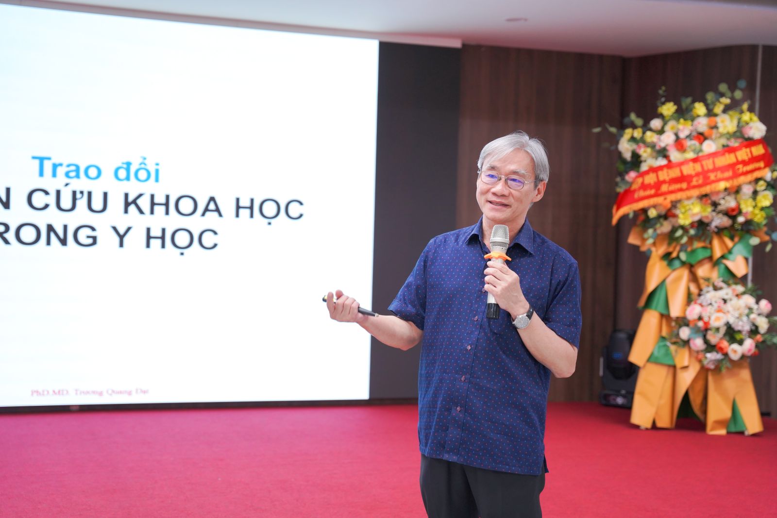 Ngoài ra, TS. Đạt cũng nêu bật những lưu ý quan trọng trong quá trình viết báo cáo và bài báo khoa học, cách lựa chọn đề tài phù hợp với điều kiện thực tế tại các cơ sở y tế, đồng thời khuyến khích nhân viên y tế vận dụng tư duy nghiên cứu vào công việc hằng ngày để cải tiến chất lượng khám chữa bệnh.